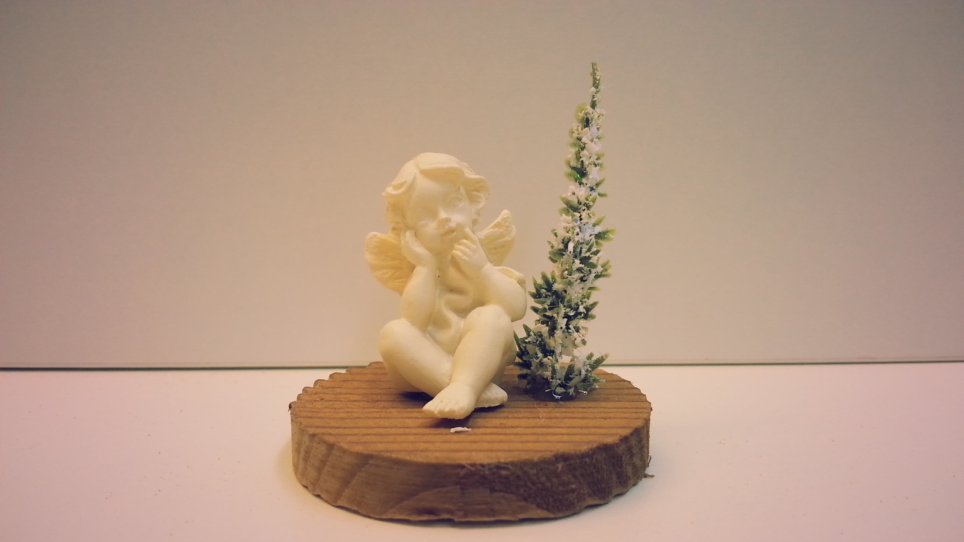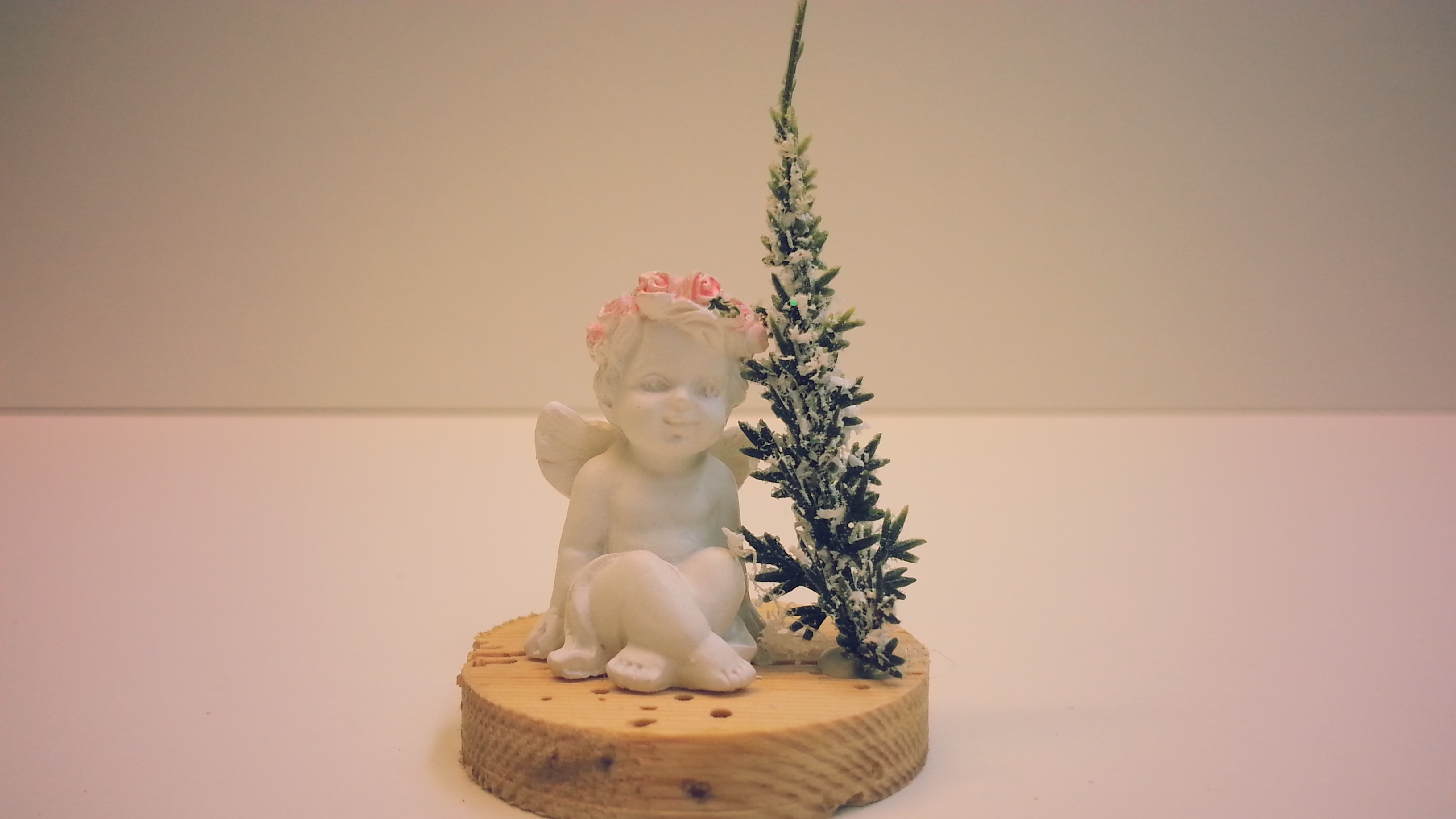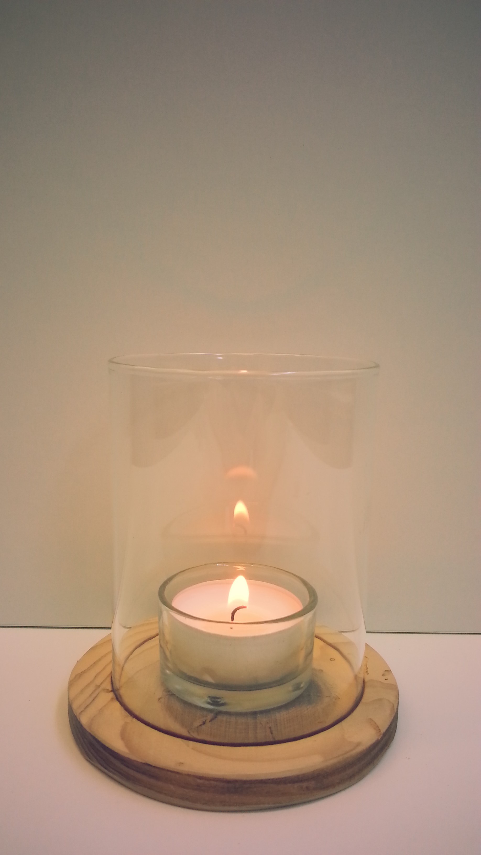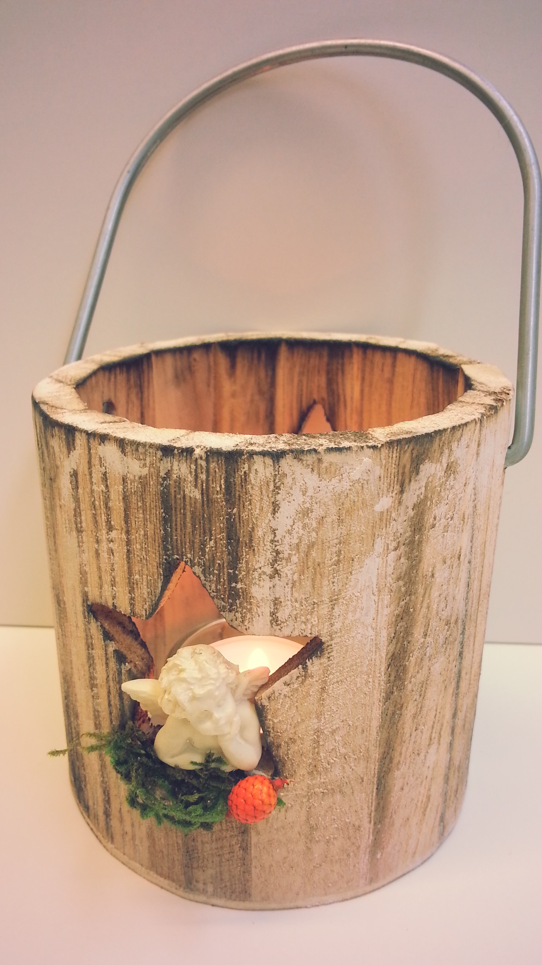 Teelichthalter mit dekorativen Tannenbaum und Altholzsockel